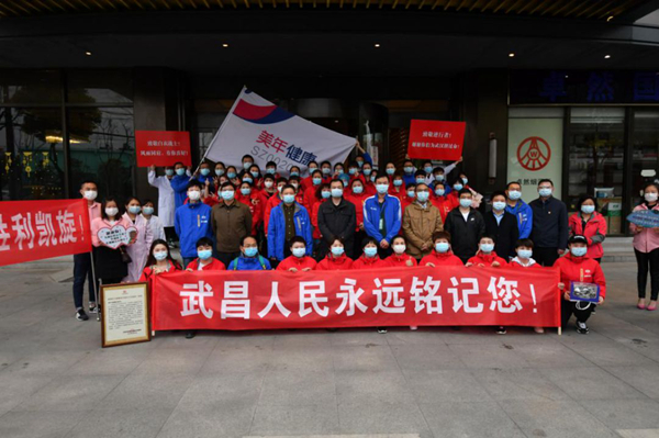 武漢市市民、志愿者向美年健康援鄂醫(yī)療隊(duì)表示最誠(chéng)摯的感謝?