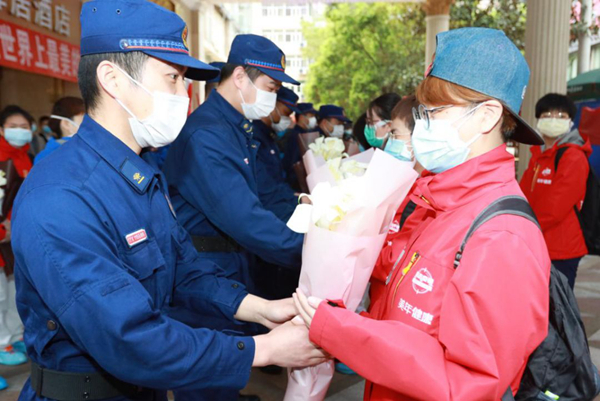 武漢市檢察院黨組書(shū)記、檢察長(zhǎng)彭勝坤在機(jī)場(chǎng)為大家送行時(shí)說(shuō):“在武漢最艱難的時(shí)候,大家響應(yīng)號(hào)召逆向而行,一個(gè)多月不畏生死、不計(jì)辛勞為抗疫斗爭(zhēng)做出積極貢獻(xiàn)。你們是天使,是英雄,我代表武漢市委市政府真心感謝大家。”?