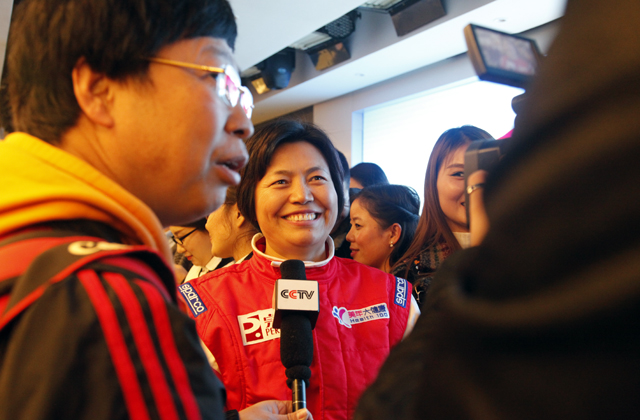 Zhou Yong presented the racing driver Guo Meiling and the pilot Liao Min from “Brave Team” with the flag