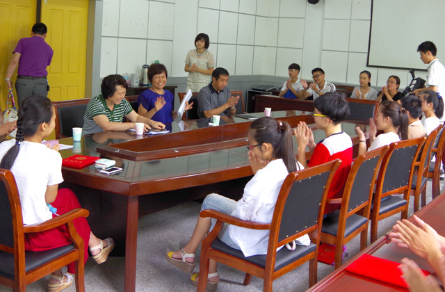After the meeting, accompanied by the leaders from Education Bureau of Qingzhou City, the chairwoman Guo Meiling had an informal discussion with the students participating in the meeting. She knew about their life and study and encouraged them to study hard, so they could make more contribution to their hometown and our society.