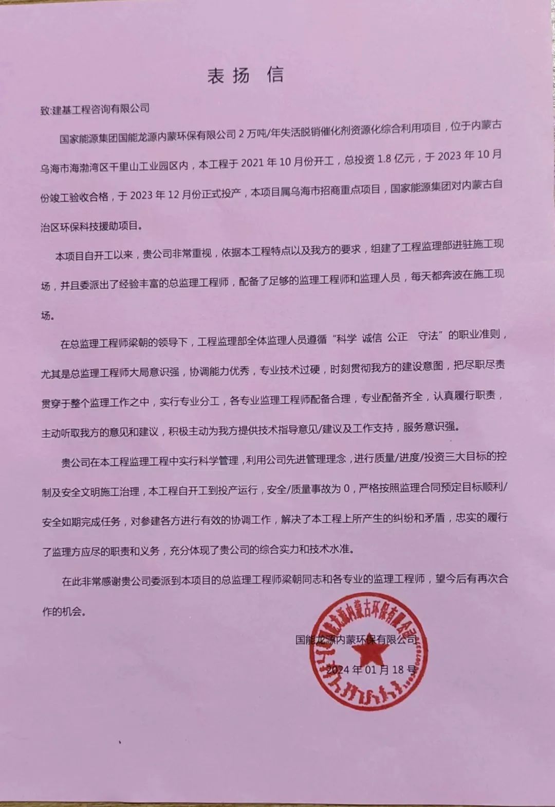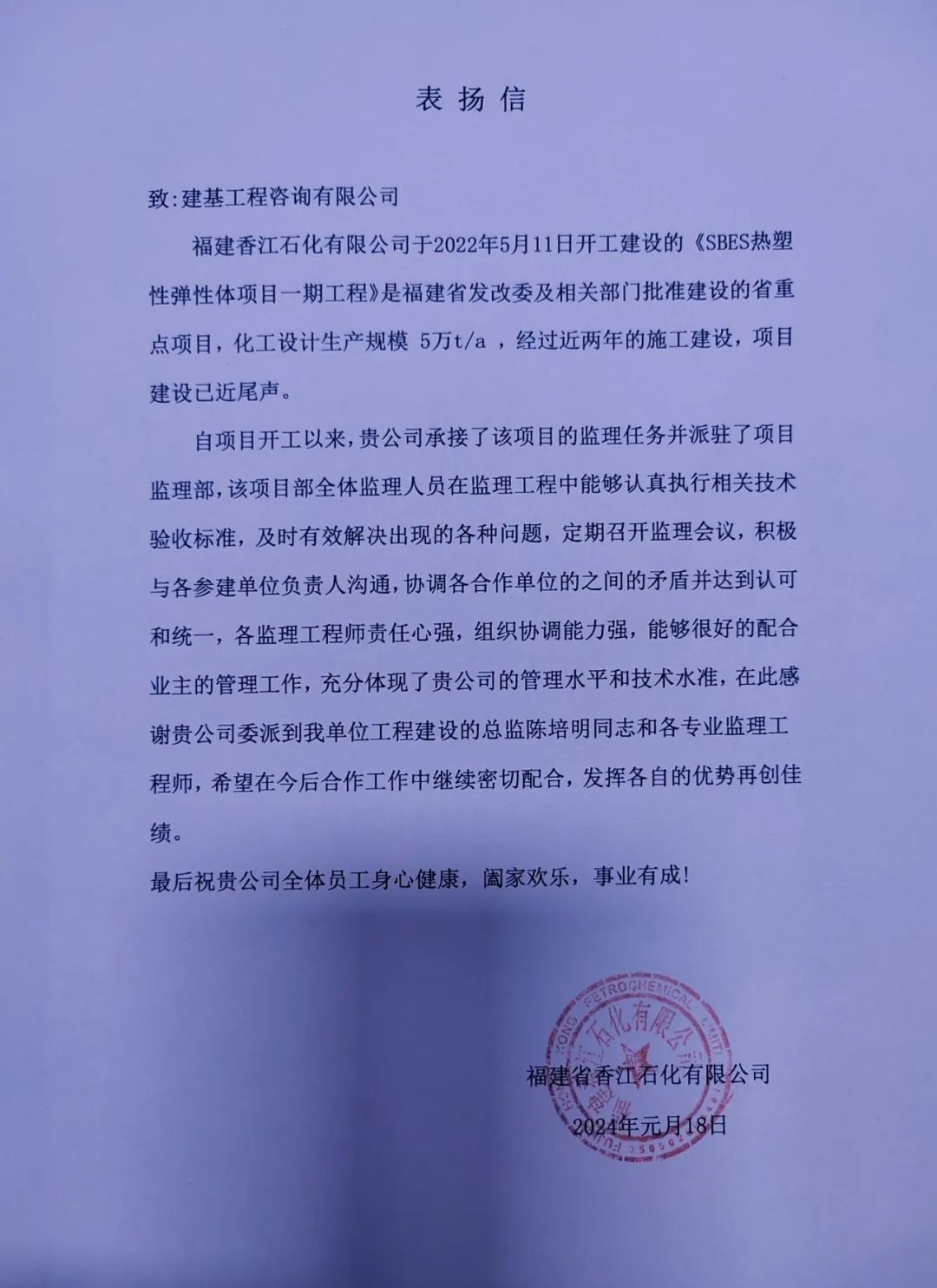 一封封表揚信,是我們不斷前行的強大動力,每一次的肯定,都激勵著我們建基人繼續奮發向前!這些信件見證了建基人始終如一的初心,以及我們敢于擔當、勇于創新的精神。