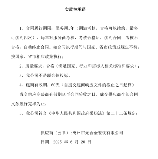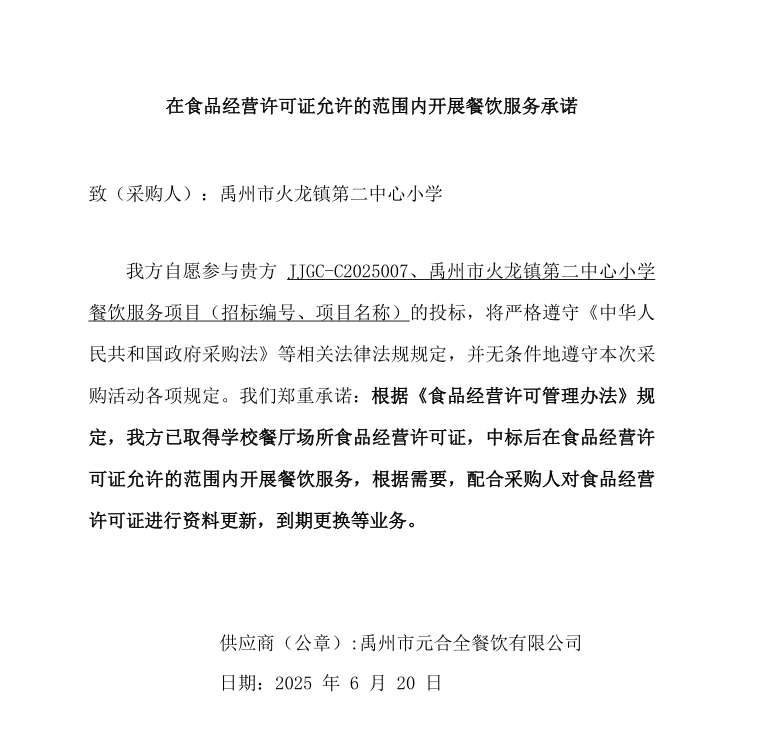 1 | 禹州市元合全餐飲有限公司 | 禹州市火龍鎮第二中心小學餐飲服務項目 | 詳見 附件 | 詳見 附件 | 詳見 附件 | 詳見 附件 |