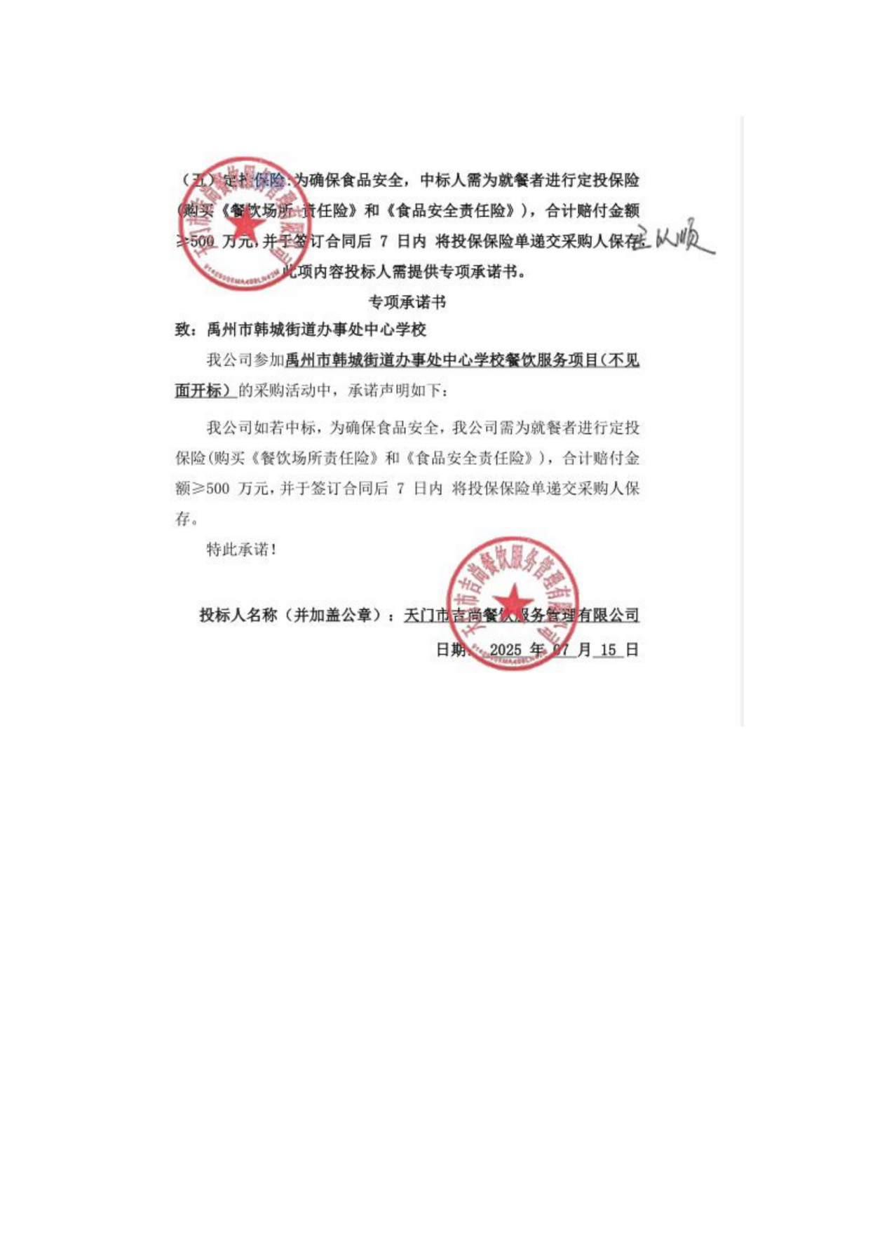 YZCG-DLG2025037 | 禹州市韓城街道辦事處中心學(xué)校餐飲服務(wù)項(xiàng)目 | 天門市吉尚餐飲服務(wù)管理有限公司 | 天門市漁薪鎮(zhèn)萬董村一組 | ||||
