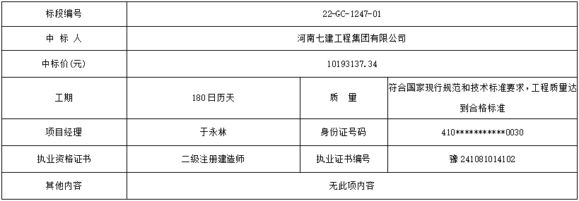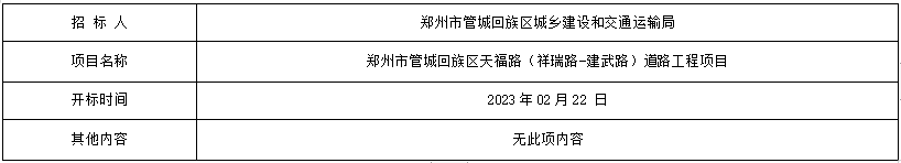 經(jīng)招標人確定,現(xiàn)將該項目鄭州市管城回族區(qū)天福路(祥瑞路-建武路)道路工程項目(標段編號:22-GC-1247-01)的中標結(jié)果公告如下: